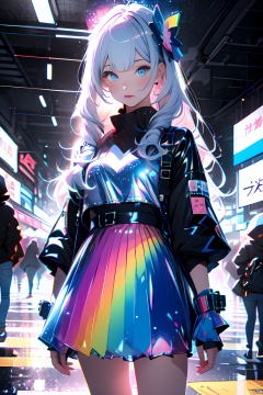 Best quality,masterpiece,transparent color PVC clothing,transparent color vinyl clothing,prismatic,holographic,chromatic aberration,fashion illustration,masterpiece,girl with harajuku fashion,looking at viewer,8k,ultra detailed,pixiv