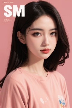 (Masterpiece: 1.0), (highest quality: 1.12), a girl, cover art, shirt, (coral: 1.1), portrait, magenta background, coral splash, sy3, SMM, watercolor style, minimalist style,