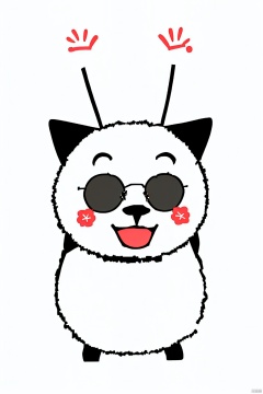 solo, looking at viewer, blush, open mouth, simple background, white background, glasses, no humans, animal, sunglasses, eyewear on head