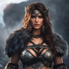photo realistic, ultra details, natural light ultra detailed portrait of a female barbarian,  ((barbarian female face volumetric fog)), Hyperrealism, breathtaking, ultra realistic, ultra detailed, cyber background, cinematic lighting, highly detailed, breathtaking, photography, stunning environment, wide-angle,photo realistic, ultra details, fancy black bra,fancy belt,((dynamic pose)),