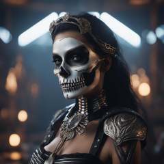 photo realistic, ultra details, natural light ultra detailed portrait of a female necromancer,  ((skeleton female face volumetric fog)), Hyperrealism, breathtaking, ultra realistic, ultra detailed, cyber background, cinematic lighting, highly detailed, breathtaking, photography, stunning environment, wide-angle,photo realistic, ultra details, fancy black bra,fancy belt,((dynamic pose)),octane render, Unreal Engine 5, Cinematic, Color Grading, portrait Photography, Ultra-Wide Angle, Depth of Field, hyper-detailed, insane details, Photoshoot, Shot on 70mm lens, Tilt Blur, Shutter Speed 1/1000, F/22