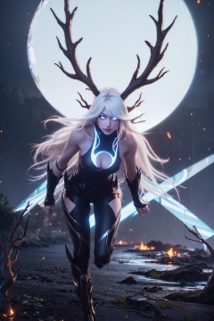 cangyuan,nianyun,battle dress,1girl,solo,<lora:nianyun_v1:0.6>,front view,blue eyes,horns,antlers,glowing eyes,full body,