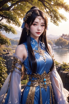1girl,solo,long hair,hair ornament,looking at viewer,detached sleeves,outdoors,