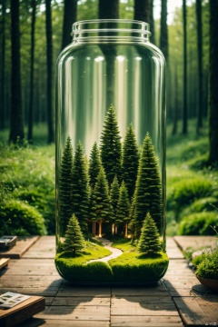 outdoors, day, blurry, tree, no humans, bottle, grass, plant, nature, scenery, forest