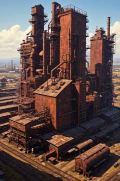 The complex cyberpunk machinery factory is manufacturing future colonial spaceships., industrialbuilding,  factory,  iron sheet,  cable,  truss,  steel_structure,  wire,  pipe,  machine,  antenna,  instrument,  equipment,  stairs,  railing,  railway_rails,  storage_barrels,  oil_tanks,  crane,  industrialbuilding,  rich light and shadow,  scifi,  realistic,<lora:EMS-274228-EMS:0.500000>,<lora:EMS-283796-EMS:1.000000>,<lora:EMS-61413-EMS:0.500000>