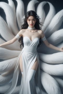 best quality,masterpiece,ultra high res,(photorealistic:1.4),A girl,fox tail,full body,snow,animal ears,fox ears,Fluffy,delicate fuzz,strapless,looking at the audience,8k,<lora:mujifox_20231115094241-000003:0.6>,