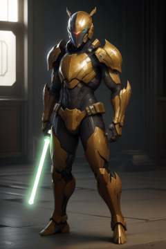 masterpiece, best quality,1boy,armorsuit,full body,  looking at viewer, Lightsaber Green armor,