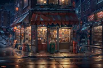 (masterpiece, best quality:1.2), ultra detailed, cinematic lighting, HDR, ilustration, corner store, shop, no humans, scenery, vending machine, convenience store, outdoors, window, building, storefront, coca-cola, night, road, street, door, alley, sign, can