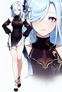 8k,best quality,masterpiece,(ultra-detailed:1.1),(high detailed skin),(full body:1.3),white background,standing,looking at viewer,(solo),hand on hip,<lora:shgy-v100-000029:0.8:lbw=OUTALL>,hdshenhe,shenhe \(genshin impact\),qipao,chinese dress,hair over one eye,long hair,hair ornament,(white background, simple background:1.6),(beautiful_face),((intricate_detail)),clear face,((finely_detailed)),fine_fabric_emphasis,((glossy)),full_shot,