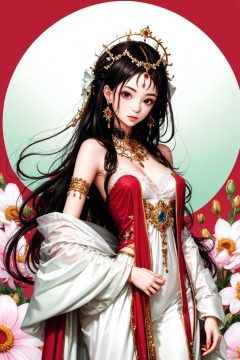 1girl,flowers theme, jewerly theme,very long hair,