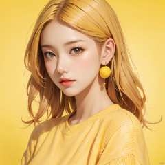 illustrator, anime, realistic, 1girl, lip, Sweater, order, Yellow gradient background, Yellow hair, Textured crop, Canadian, (masterpiece, best quality), Lemon earrings