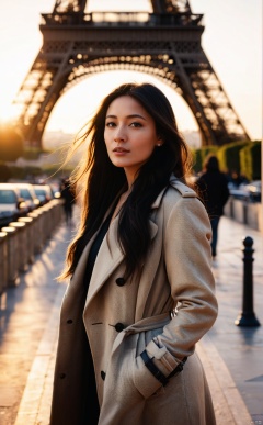 leogirl, 1 gir walking in Paris, ( Eiffel Tower : 1.4 ), coat, long hair, ear, neck,professional soft lighting, cinematic, bright scene, long hair, black hair, photo by Annie Leibovitz, 25 mm f 1.4,bokeh,Leicaมmoring,golden hour, ambiant occlusion shadow (original: 1. 2), (realistic: 1. 5), ultra detail, high resolution, ultra detailed, best quality, amazing, top quality, extremely detailed CG unity 8k wallpaper, cinematic lighting