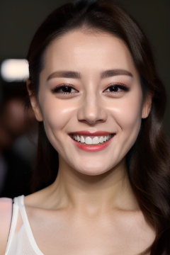 PHOTOREALISTIC,REALISTIC,masterpiece,best quality,highres,ultra detailed,8k,1woman,portrait,strobe lighting,looking at viewer, makeup,smile,teeth,night,<lora:dilireba_alexnsfw3.0:0.6>,dilireba