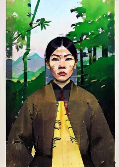 1girl,4K,masterpiece,Oil painting,High Quality,<lora:Euan Uglow-V2:0.9>,To shoot from above. ,art by Zao Wou-ki,extreme close - up, focus on face, A woman in red Hanfu, wearing a white transparent veil Chinese swordsman floats over the bamboo forest and stretches his body, solo,gopro photography, enemy falling to the ground, ancient Chinese bamboo forest in the background,