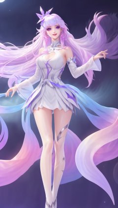 (1girl),smooth chin,masterpiece,detailed face,((hair ornament)),top quality,4k,make up,best quality,legs,medium breasts,<lora:王者_王昭君_星穹之声_v1.0:0.89>,colorful hair,purple eyes,sleeves,Shawl,night sky,giggling,looking at viewer,