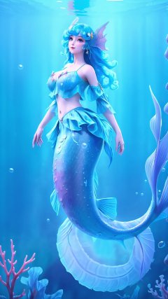 (1girl),smooth chin,masterpiece,detailed face,((hair ornament)),top quality,4k,make up,best quality,alone,single,solo,only one,one character,blush,(body blush),(detached sleeves),earrings,see-through clothes,(blue hair),under water,(head fins),long hair,(from below),ocean,long fish tail,fish,(huge breasts:1.33),fish tail,fish leg,(puffy hair:1.13),head wings,frilled skirt,frilled clothes,looking at viewer,frilled shirt,bubble skirt,green skirt,full body,(detached shirt),(mermaid tail),neeless mermaid,bandeau,(nude:1.251),(nipples),blue skirt,<lora:王者_朵莉亚v2.0:0.78>,