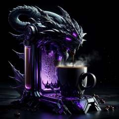 <lora:DraconicTech-15:0.8> draconictech, scifi,obsidian , iridescent,   <lora:add_detail:0.5>coffee machine, coffee mug,