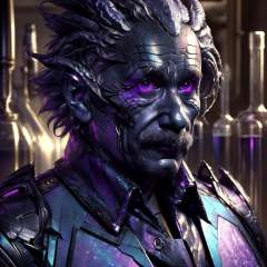 <lora:DraconicTech-15:0.8> draconictech, scifi,obsidian , iridescent,   <lora:add_detail:0.5>man , Albert Einstein, <lora:Albert Einstein:0.8> , scientist coat, at a lab