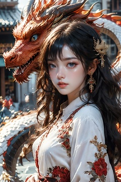 1girl, dragon,materpiece, highly detailed, 8K, dragon girl