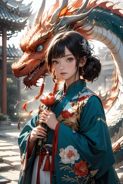 1boy, solo,,chinese clothes, eastern dragon,chinese new year,lantern, chinese new year, dragon girl