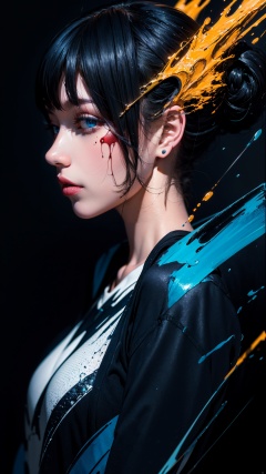 masterpiece, best quality, ultra high res, 1girl, (abstract art:1.4), bleeding blue, blue theme, visually stunning, beautiful, evocative, emotional, side view