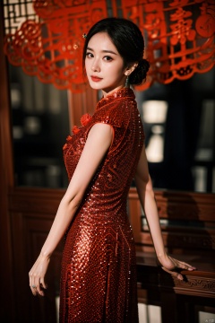 新年红色闪耀亮片旗袍 - 1.0