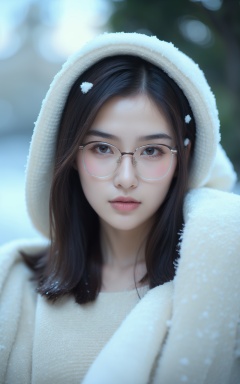 stym,1girl,glasses,Snow-white skin,