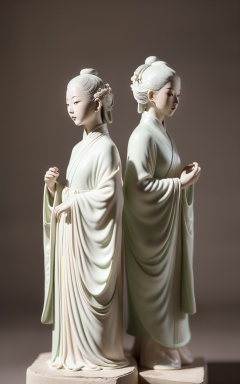 (masterpiece, top quality, best quality, official art, beautiful and aesthetic:1.2),cover art,illustration minimalism,background of stoneware and stone,dark background,zen,silence,fallen leaves,bleak,poignant,sculpture of girls in ancient chinese hanfu,chinese dragon sculpture,(sculpture:1.2),