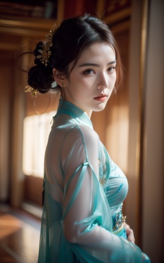 (art by Anna Dittman:1)(art by Alessio Albi:1.2),(masterpiece, top quality, best quality, official art, beautiful and aesthetic:1.2),Fine handmade fabric,Dramatic light,cover art body art future girl,A shallow smile,1girl,16yo, Korean Idol, Dynamic Dance, Sexy Clothing,China's Forbidden City is in the background,cheongsam