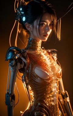 (((masterpiece))),(((best quality))),((ultra-detailed)),(highly detailed CG illustration),((an extremely delicate and beautiful)),cinematic light,((1mechanical girl)),solo,(cowboy shot:1.2),(machine made joints:1.2),((machanical limbs)),(blood vessels connected to tubes),(mechanical vertebra attaching to back),((mechanical cervial attaching to neck)),expressionless,(wires and cables attaching to neck:1.2),(wires and cables on head:1.2),(character focus),science fiction,extreme detailed,colorful,highest detailed,loongs,fengs,background,