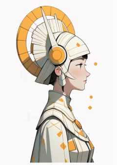 1gril,fullbody, on other colors. The headgear should be depicted in a stylized, modern form. The illustration should be flat and minimalist, with a white background to emphasize the character's whimsical side profile and headgear, resonating with the geometric aesthetic we established earlier.