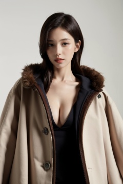 1girl, upper body, looking at viewer, white background,stockings, fur_coat,
