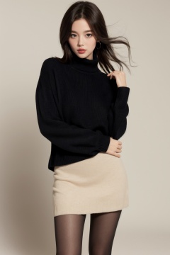 1girl, upper body, looking at viewer, sweater_dress, black_pantyhose,