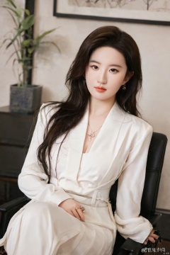 (upper body:1.3), liuyifei,flowers,masterpiece, best quality, ultra-detailed, ultra high res,8k, (photorealistic:1.2), RAW photo, extremely detailed, 1 girl, (18_years_old),(172cm tall), (((elegant))), (round face:1.3), (long hair), black hair, curly hair, seductive smile, beautiful detailed eyes, beautiful detailed face,(white shirt),suit jacketlexious,necklace,diamond ring,bracelets,earrings, large breasts, slender waist, long legs,thick legs,plump,strong abs,(high heels:1.3),(pantyhose:1.3),(in the office),sitting on a chair,cross legs,lighting on face, bright back lighting, liu yifei