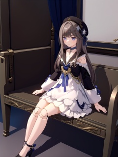 girl,solo,hertasr,dress,dollgirl,<lora:[角色]-[黑塔-星穹铁道]HertaStarRailV1:1>,sitting,, (best quality),((masterpiece)),