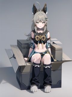 1girl,smile,sitting,box,paw shoes,full body,grey background,(kbxll:0.6),<lora:[角色]-[绮良良-原神]kirara:1>,, (best quality),((masterpiece)),
