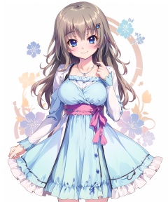 kujoumiyako,kujoumiyako dress,brown hair,blue eyes,(looking at viewer:1.2),cowboy shot,smile,blush,long sleeves,necklace,, masterpiece,best quality,