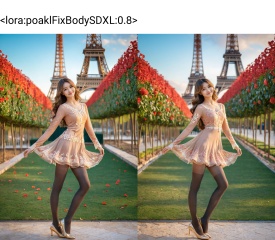 (Good structure),HDR,UHD,8K,A real person,Highly detailed,best quality,masterpiece,1girl,realistic,Highly detailed,(EOS R8, 50mm, F1.2, 8K, RAW photo:1.2),ultra realistic 8k,(best illumination, best shadow, extremely delicate and beautiful),(official art, beautiful and aesthetic:1.2),solo,1girl,long hair,Wind,flowing hair,kind smile,pose for picture,looking_at_viewer,perfect body,full body,long hair,Wind,flowing hair,kind smile,pose for picture,looking_at_viewer,perfect body,lack pantyhose,sexy,argylelegwear,argyle,lolidress,dress,Eiffel Tower background,Perfect details,Complex lace,lace,wearing a flowing red gold dress made of petals,in a serene garden filled with blooming flowers,a representation of beauty and grace,charming,cute,beautiful,ultra detailed,dream like shot,sunset,((holographic))),(((rainbowish))),expressive,cinematic,dynamic pose,midjourney,1girl,solo,realistic,black pantyhose,argylelegwear,heben,((poakl)),<lora:poaklFixBodySDXL:0.8>,