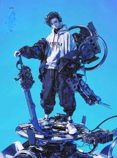 male focus,1boy,jacket,black hair,blue background,solo,holding,shoes,full body,holding weapon,white jacket,headphones,pants,baggy pants,weapon,standing,looking at viewer,short hair,black pants,black eyes,hood down,sneakers,shirt,black shirt,hood,<lora:tusi索泰:0.8>,realistic,graphics,super realistic,black_background,super fine,