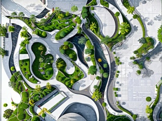 Top view,general drawing,masterplan,water,tree,丝路10, Top view,green land,road