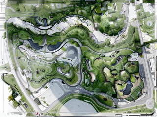 Top view,general drawing,masterplan,water,tree,丝路10, Top view,green land,road