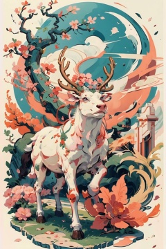((masterpiece)), best quality, perfect anatomy,8K wallpaper,mChinaChic, no humans, closed mouth, solo, sacred deer,  huge antlers, full body, slender, lift up front hooves, pink flower, white and pink fur, leaf, animal focus, branch, tree, broken jade bracelet, smoke, petal<lora:mChinaChic_v1:0.8>