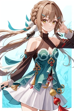 <lora:青雀v2:1>, 1girl,qingque,bare shoulders,long sleeves,braid,twintails,dress,white skirt,, (masterpiece,best quality:1.2),absurdres, high quality,