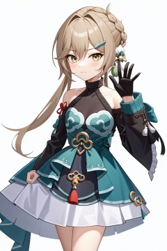 <lora:青雀v2:1:lbw=char>,1girl,qingque,bare shoulders,long sleeves,braid,twintails,dress,(white skirt:0.8),, (masterpiece,best quality:1.2),absurdres, high quality,