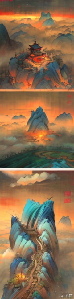 Wang XIMeng style,motains,tree,Micro landscape,fallwater, Chinese three-dimensional landscape painting, Zen aesthetics, Zen composition, blue copper mine, flowing particles, macro lens, rich light, glowing mountains, high mountains, clouds, minimalism, ultimate details, unparalleled details, electric effects, realism, 3D rendering,finedetails,ycbh,painter,国风,风景, Landscape painting