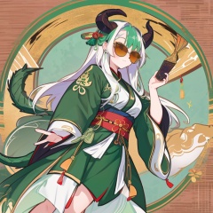 <lora:bichi style:1>,bichi style,Half a dragon,a Chinese dragon,youthful and immortal,with pearl like scales,gorgeous colors,cute and quirky style,exquisite bear,majestic horns,wearing-green Chinese Hanfu,paired with round sunglasses,rich and colorful,full of youthful Natural,ultra-high,color-angle,stunning,film photography,