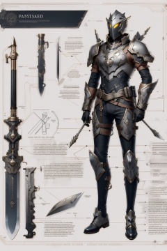 ((HRD, HUD, 8K)),((masterpiece, best quality)), highly detailed, photo_\(medium\),GameWeapon, no humans, science fiction, english text, simple background, white background, fantasy, concept art, from side, multiple views, grey background, arrow (symbol), weapon, knife, <lora:20240218-1708226210017:0.7>