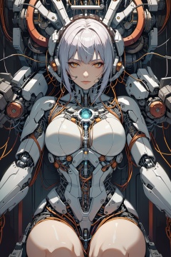 masterpiece,best quality,1mechanical girl,detailed face,shadows,8k,ultra sharp,metal,intricate,ornaments detailed,cold colors,egypician detail,highly intricate details,rending on cgsociety,facing camera,machanical limbs,mechanical cervial attaching to neck,wires and cables connecting to head,killing machine,ghost in the shell,((anime art style)),