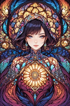 masterpiece,best quality,1girl,fractal art,stained glass art style,