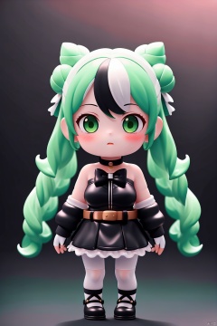 1girl, solo, long hair, breasts, looking at viewer, blush, open mouth, bangs, skirt, shirt, gloves, long sleeves, dress, bow, twintails, jewelry, very long hair, green eyes, jacket, white hair, pantyhose, multicolored hair, cowboy shot, green hair, open clothes, choker, black gloves, belt, indoors, fingerless gloves, off shoulder, hair bun, open jacket, streaked hair, black jacket, black pantyhose, double bun, black bow, gradient hair, black choker, cross, fishnets, fishnet pantyhose, masterpiece